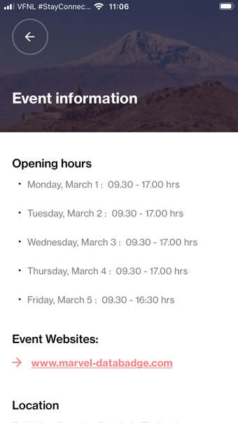 Databadge Events vereist iOS 12.1.2 en hoger. De huidige versie van de app is 1.7 en u kunt deze alleen in het Engels uitvoeren.